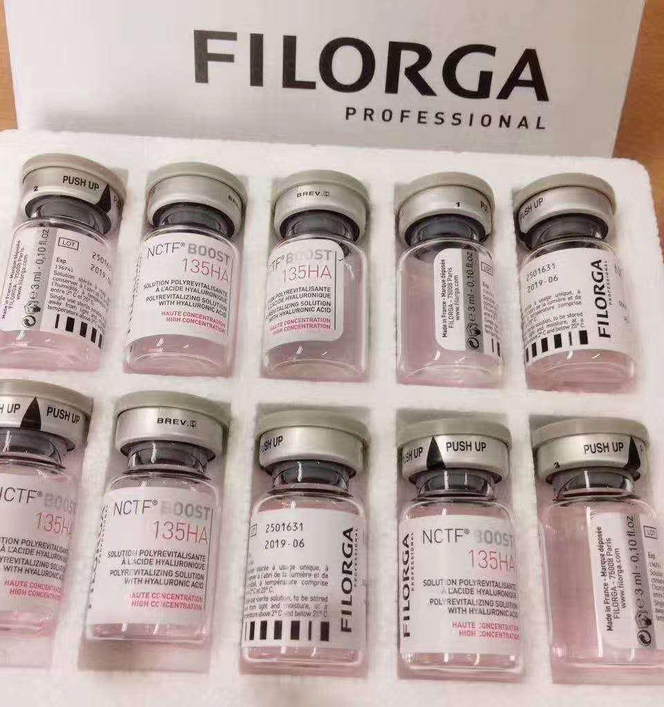 Filorga® NCTF 135HA is an anti-aging mesotherapy indicated for intensive revitalization, moisturizing of tired or dull skin, treatment of wrinkles. The formula consists of 55 active ingredients (vitamins, amino acids, proteins and antioxidants) that stimulate and repair aging skin.